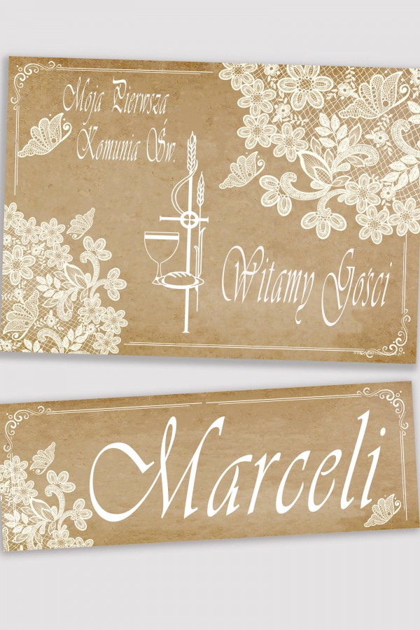 Set of unique communion invitations - A3 format - personalized item on chalk paper. Uniqueness lies in the graphics, which fills the entire area of the invitations so-called full print and printed content. It is necessary to fill in the following data: