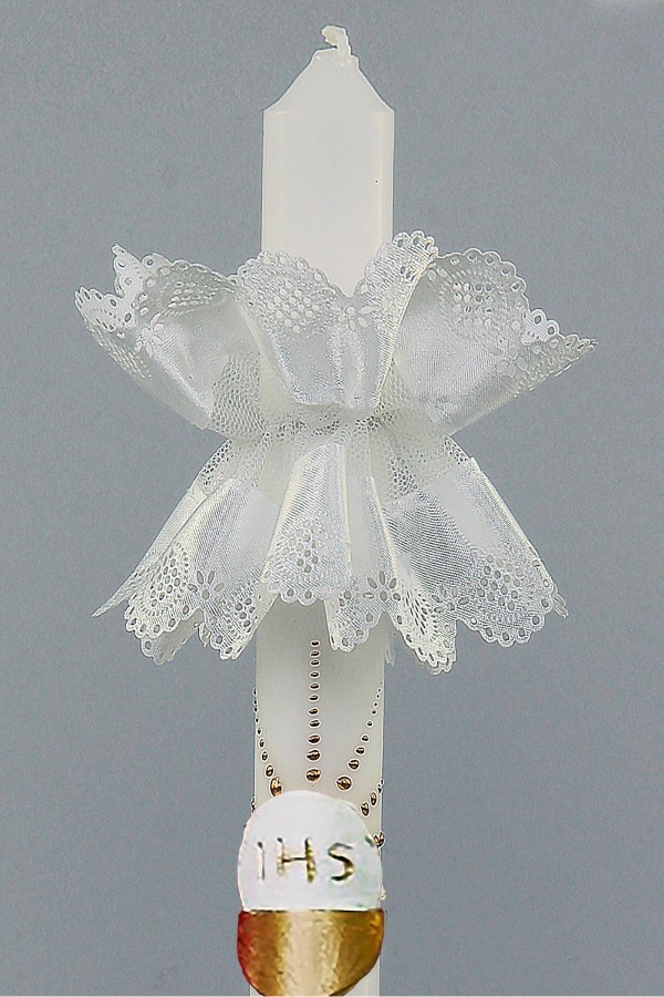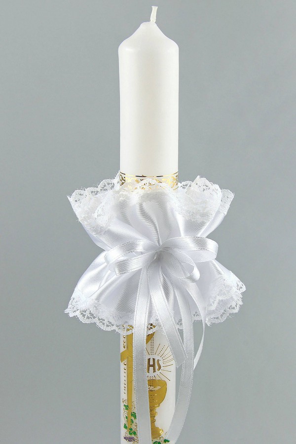 On the day of the First Holy Communion, it is worth taking care of every detail, even the smallest, so that our child can feel comfortable and glamorous. Communion candleholders are an incredibly practical addition to the candle. They provide protection for the child during the ceremony and prevent the wax from dripping. In addition, communion drip caps are an excellent styling element, giving a beautiful look. In our offer you will find two types of communion canopies - classically decorated and decorated with a unique bouquet. Our products are created with thought and commitment. The canopies are made of satin or tulle, with beautiful decorations, in the form of a cone or frill, so they will look beautiful at the First Communion ceremony.