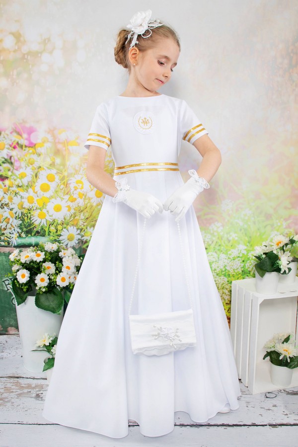The ceremony of receiving the First Holy Communion is a very important time for the child and his parents. Everyone wants this day to be perfect in every way. Communion dress should be tailored, and at the same time provide comfort and freedom of movement for the child. We offer a wide selection of high-quality communion dresses: classic, waist-length, Josephine, satin and premium. They are wonderfully matched with accessories, such as a handbag, garland or cape, for example. In addition, our communion dresses have embellishments such as gold or silver host, frilly trims, as well as beautiful embroidery. Thanks to our outfits, every girl will look unique and subtle on her First Communion day.