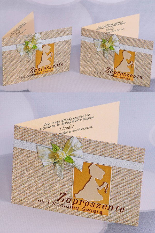 The pattern in the photo belongs to the category: Communion accessories for girls. The model shows a communion garland belonging to the series: New Style communion garlands.